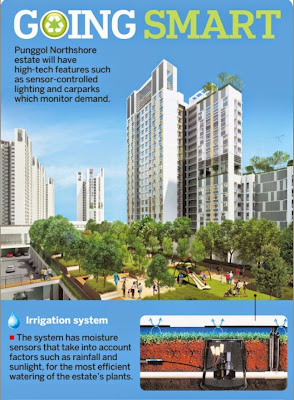 Smart flats are just one high-tech aspect of Punggol Northshore, the first new HDB estate to be a test bed for smart technologies. Residents will encounter smart fans in the neighbourhood centre, which respond to wind speed and temperature conditions, and sensor-controlled lighting in common areas.